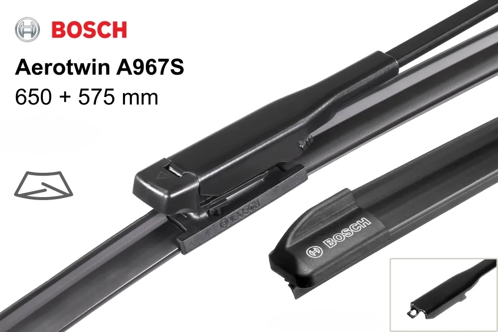 Новые стеклоочистители Bosch Aerotwin c плоским типом конструкции характеризуются, особенно при высоких скоростях, стабильностью и ветроустойчивостью. Удается в значительной степени избежать ненужных шумов и сохранить высокие качества очистки стекла при увеличении скорости
