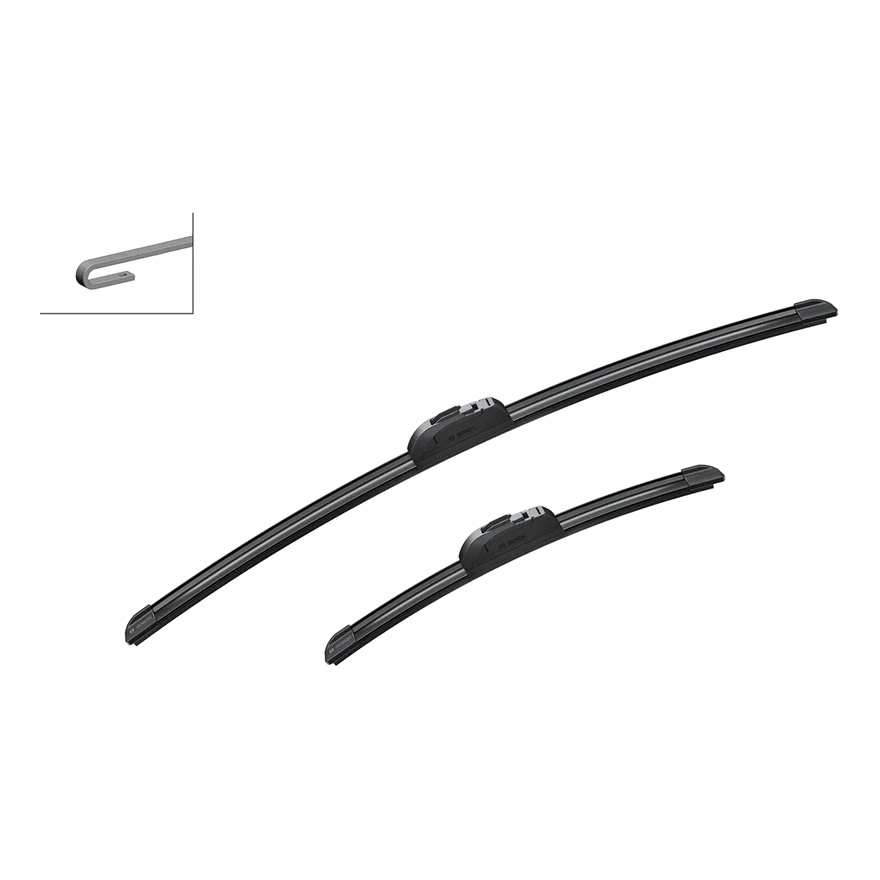 Новые стеклоочистители Bosch Aerotwin c плоским типом конструкции характеризуются, особенно при высоких скоростях, стабильностью и ветроустойчивостью. Удается в значительной степени избежать ненужных шумов и сохранить высокие качества очистки стекла при увеличении скорости. В числе достоинств AEROTWIN – упрощенная смена стеклоочистителей без поиска адаптера и сложного монтажа с помощью новейшего штекерного разъема на поводке щетки